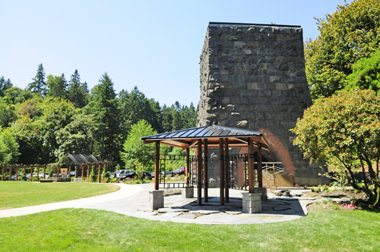 GreenWorks worked for the City of Lake Oswego to design upgrades to this historic park in the middle of the city. Improvements included a picnic lawn, trail upgrades, walls, overlooks, an entrance trellis, parking lot stormwater facilities, and an accessible ramp to the river. We recently completed a second phase of interpretive upgrades. A series of interpretive panels on the arbor and under an interpretive shelter outline the historic furnace/ steel smelter on site.