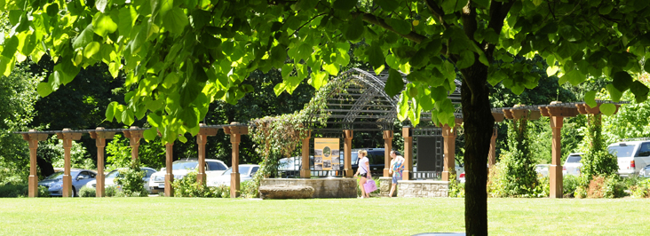 I always enjoy interpretation that is not just a sign; something interactive and telling without making you stand there and read. I think the mini smelter BBQ adds this element in George Rogers Park. The small replica of the historic iron furnace gives residents a chance to cook up their own fire! We also put interpretive panels into existing arbor framework so they fit into the site. Sometimes you can learn something without even trying.