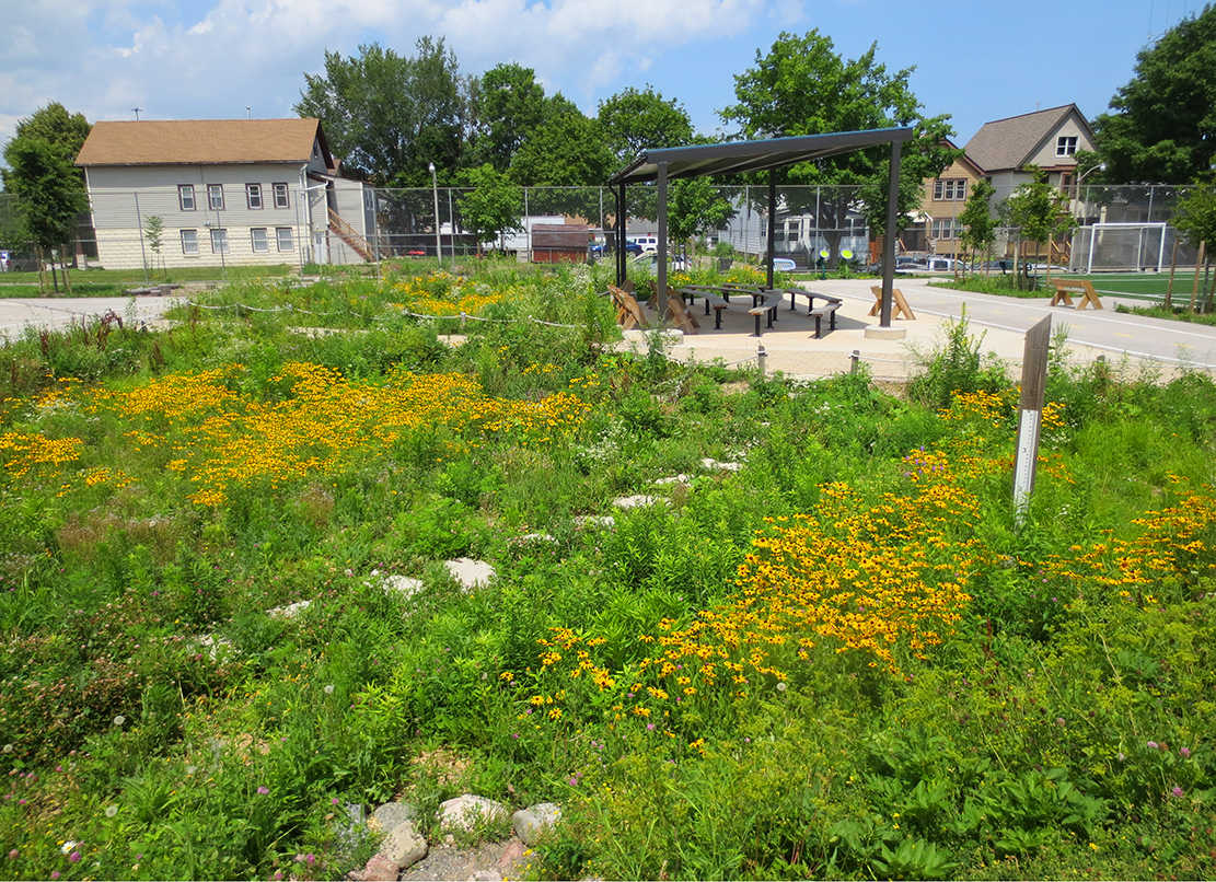 This project was completed in partnership and collaboration with Milwaukee Public Schools, Milwaukee Metropolitan Sewerage District (MMSD), Reflo and Stormwater Solutions Engineering.