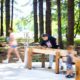 The new playground design includes a large central outdoor covered classroom with natural wood benches, a smaller classroom with picnic tables, a log climbing structure, and a loose parts stumps and sticks play area. Stepping stone pathways wind through stormwater basins with native plantings, encouraging exploration and STEM-based learning activities. For active play, a new artificial turf soccer field, a new basketball court, and a painted bike track that meanders around circular concrete planter seat walls create a dynamic and engaging environment for diversity of students.